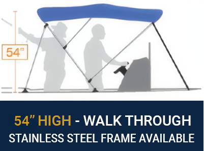 Boat Bimini frames are available in widths from 54" to 103" and come in a round tube 3 bow style.