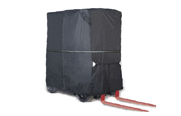The Fork-Stor easily slips over the forklift in seconds. Fits most lifts up to 8,000 lbs. This is manufactured by the fine line of Eevelle and is great for the yard or warehouse, keeping your lifts resale value high.