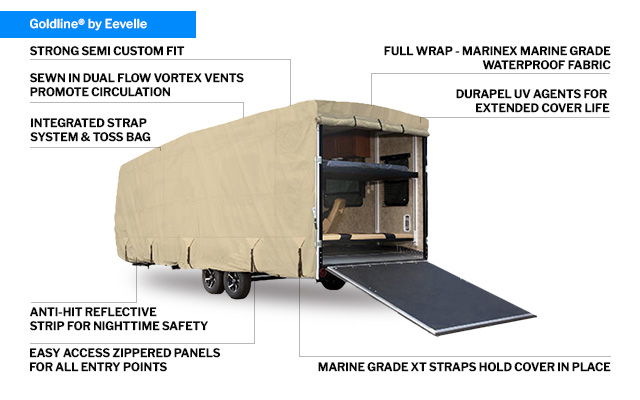 Our covers allow access to your RV even when it's securely covered. Both covers have full height zippered panels and air vents are strategically located on the top of the cover to prevent air billowing. The exclusive passenger side zippers are strategically placed to allow access to doors and storage areas.